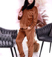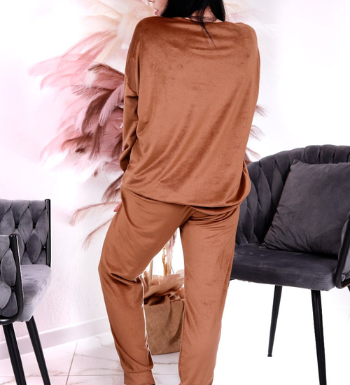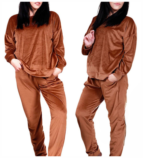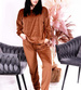 - Luźny damski dres wykonany z miłego w dotyku materiału w kolorze brązowym.