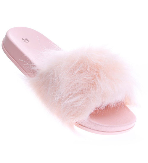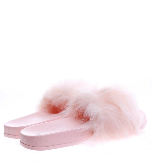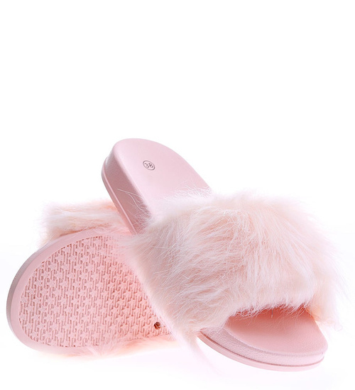Różowe klapki damskie z futerkiem /C5-2 15197 T199/