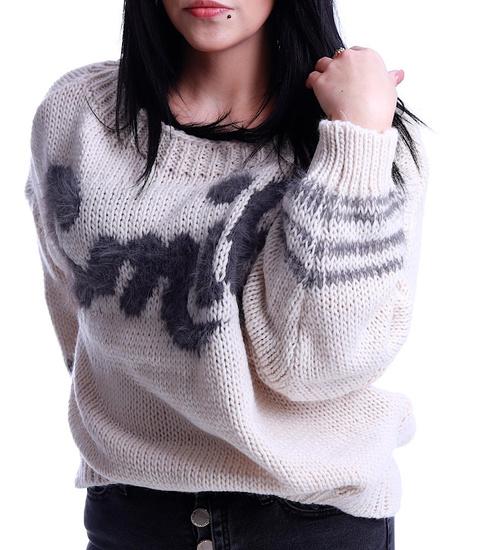 Beżowo szary oversizowy luźny sweter Smile Minouu /H UB636 L732/