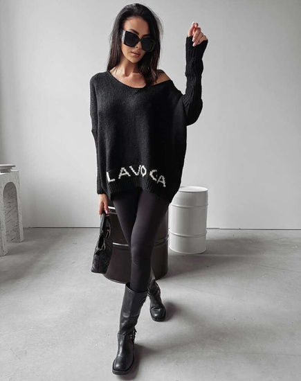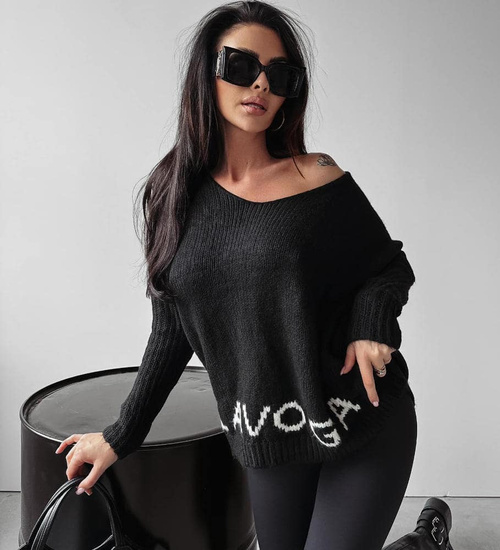 - ✔️Oversizowy sweter damski w luźnym wydaniu w kolorze czarnym.