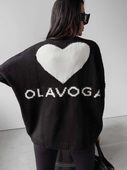 Oversizowy czarny damski sweter z sercem Olavoga /H UB700 L134/