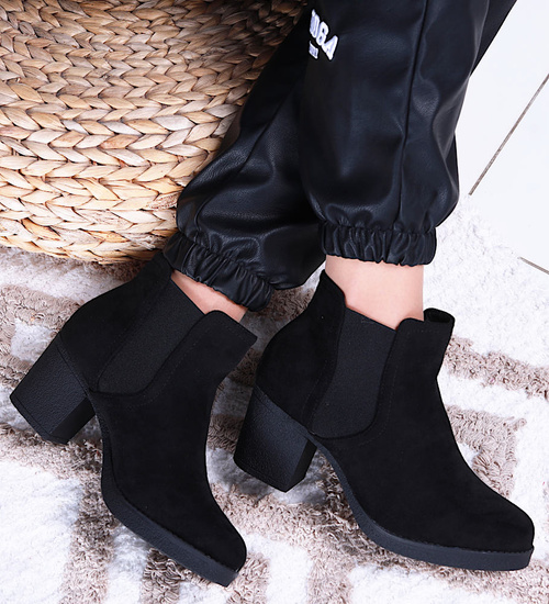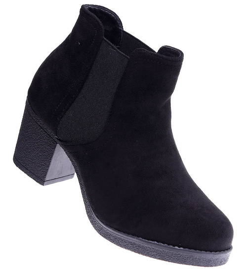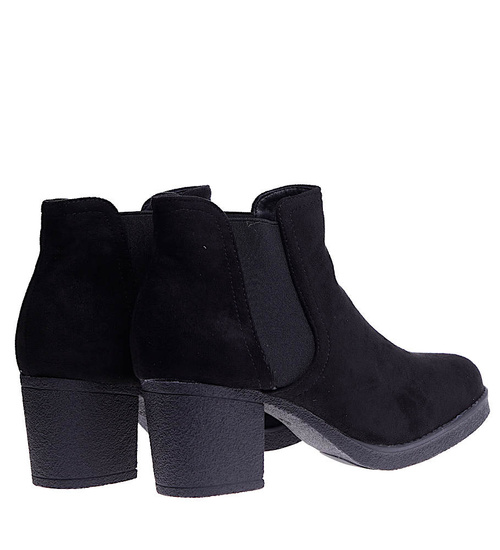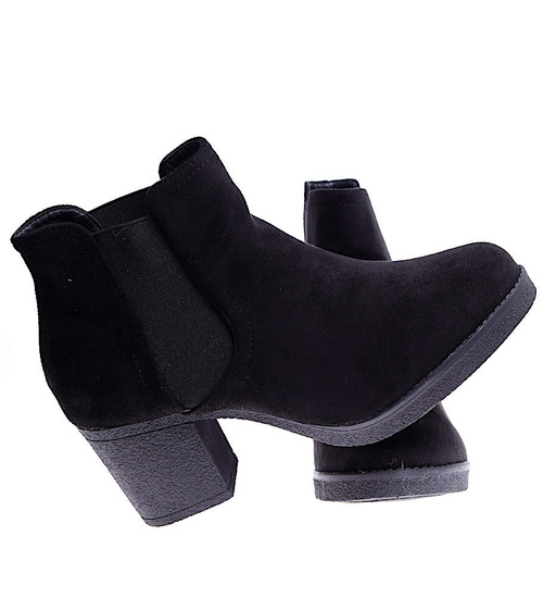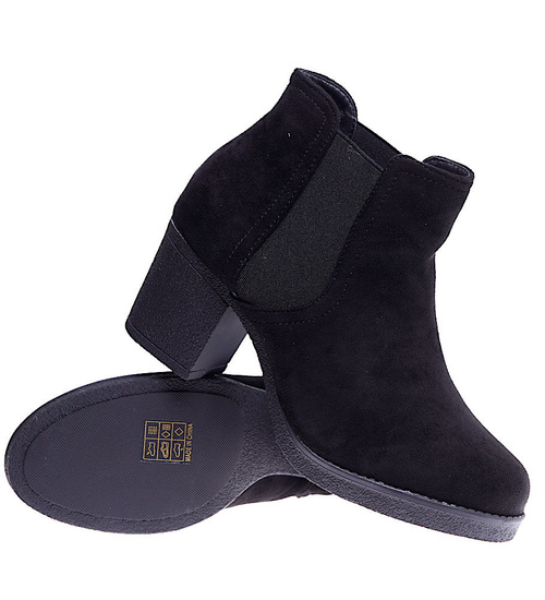 Czarne zamszowe botki na niskim obcasie /G8-3 15202 T340/