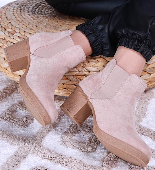Beżowe zamszowe botki na niskim obcasie /E6-3 15201 T340/