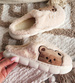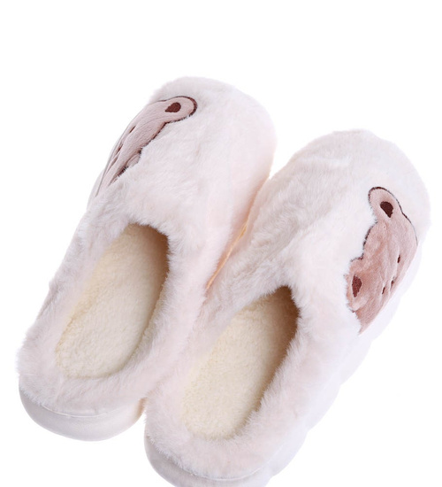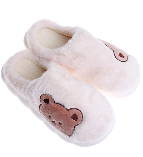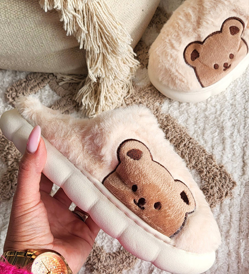 Pluszowe beżowe kapcie damskie z misiem /G8-1 15210 S246/