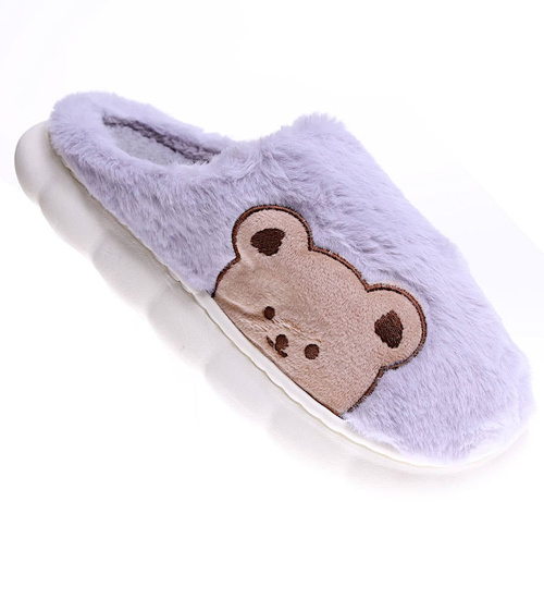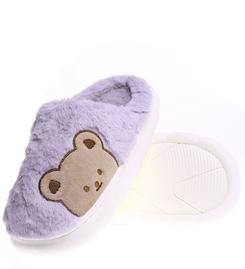 Pluszowe szare kapcie damskie z misiem /A9-115212 S246/