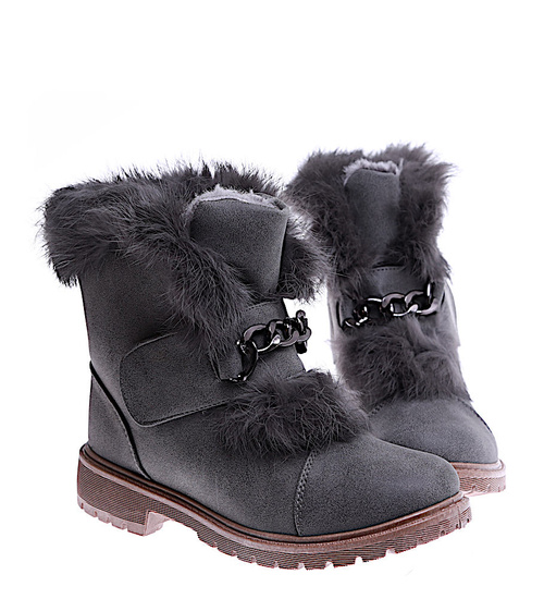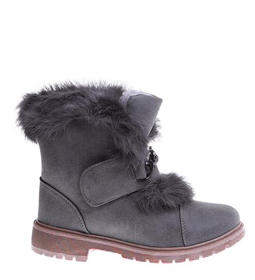 Szare dziewczęce trapery z futerkiem /D6-2 15227 T490/