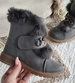 - Dodatkowym atutem jest szare futerko z dodatkiem złotej klamerki.