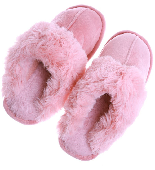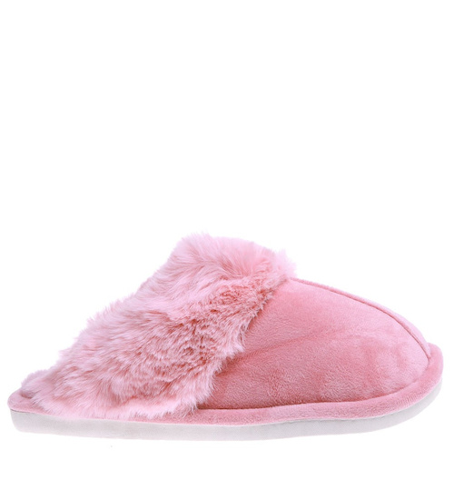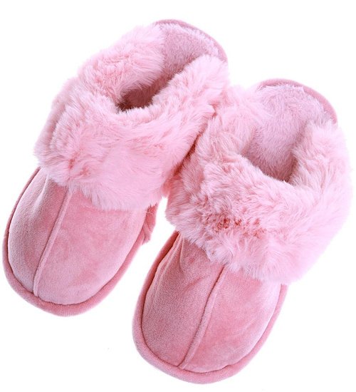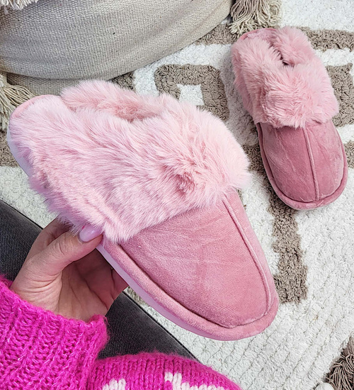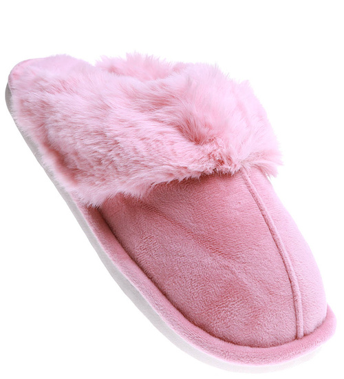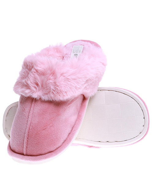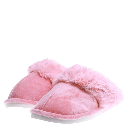 Pluszowe różowe kapcie damskie z futerkiem /G6-1 15266 S147/