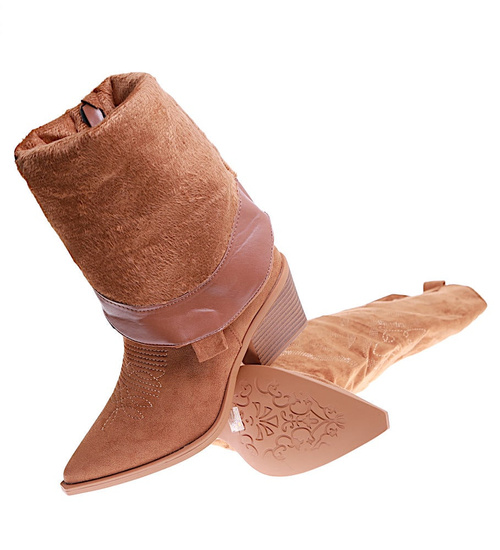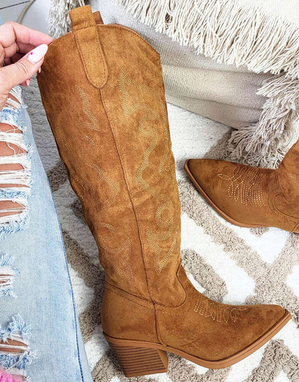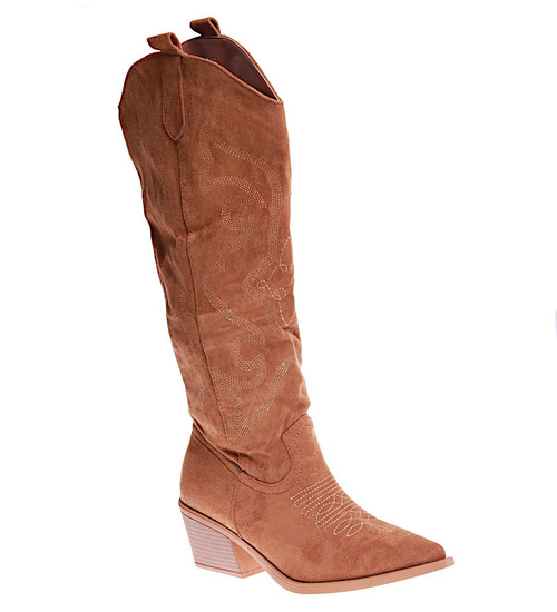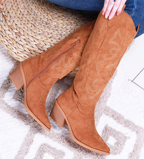 Camelowe kozaki kowbojki na obcasie /B6-2 15222 T690/