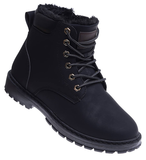 Zimowe czarne trapery timberki męskie /B2-1 15257 T488/
