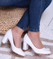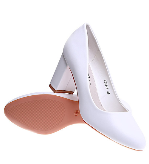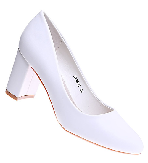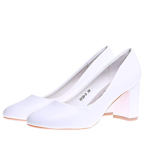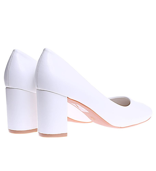 Białe czółenka damskie na słupku /F6-3 15239 T591/