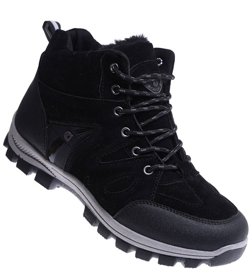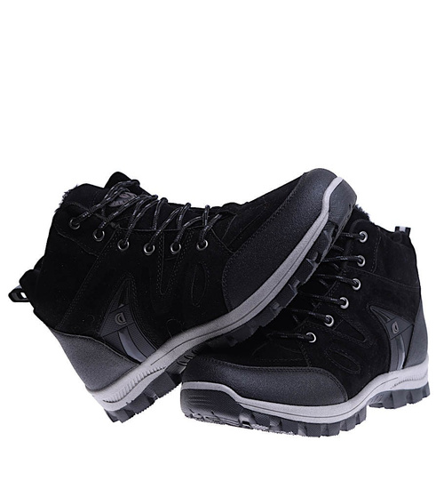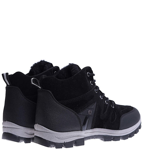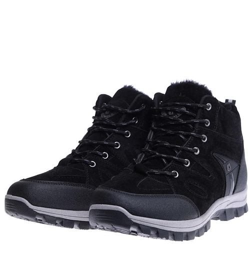 - Ocieplane męskie buty trekkingowe w kolorze czarnym- wygodne buty na mroźne dni.