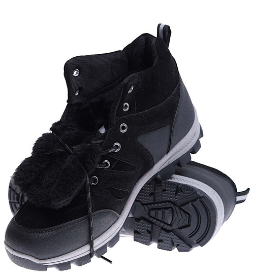 Ocieplane czarne meskie buty trekkingowe /G6-1 15253 T572/