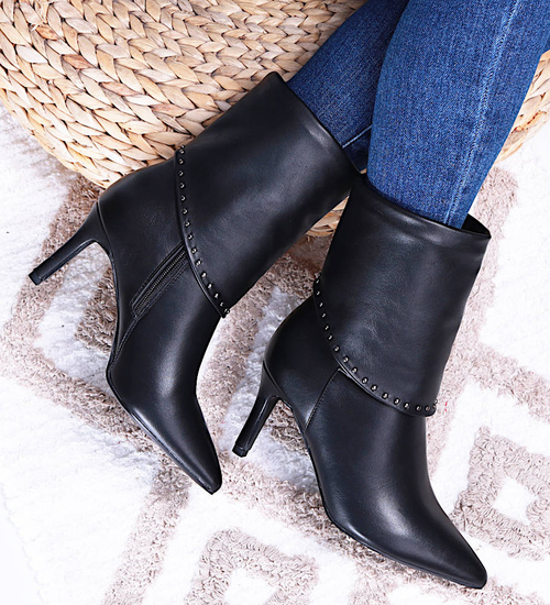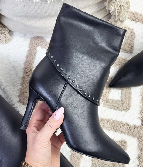 Klasyczne czarne botki na szpilce / 15279 F5-1 T340/