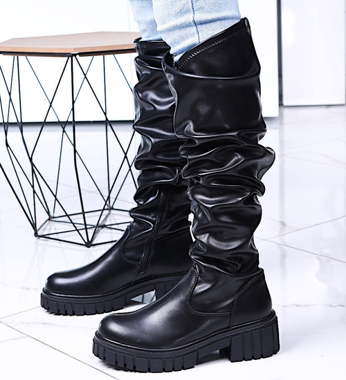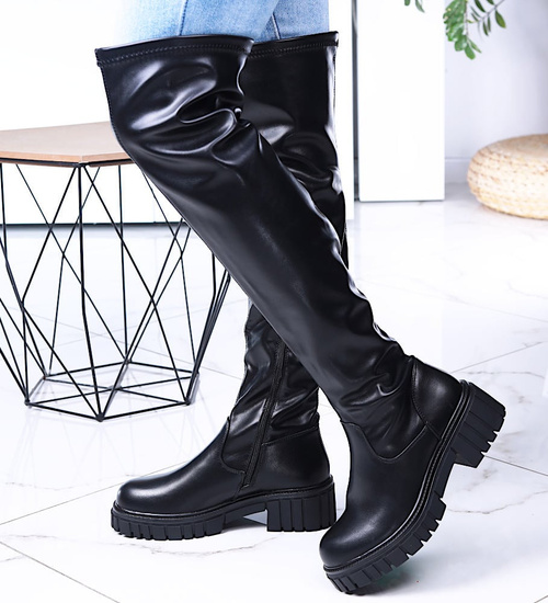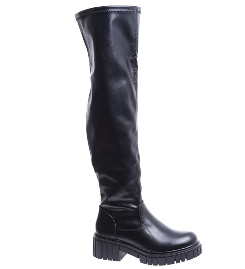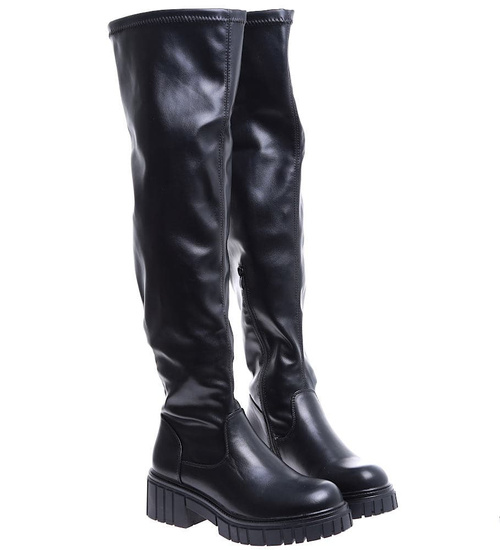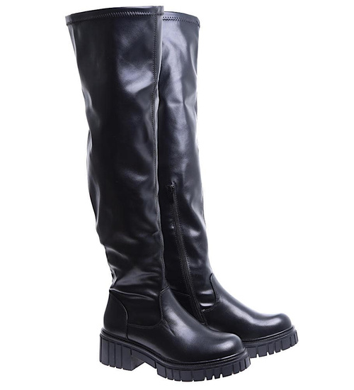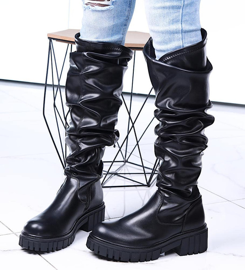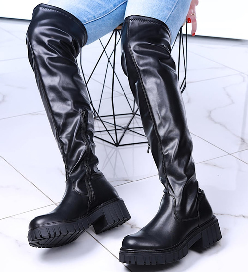 Wysokie czarne kozaki muszkieterki na platformie /F3-3 15293 T739/