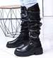 - Ich cholewka sięga powyżej linii kolan co optycznie wysmukla nogi.