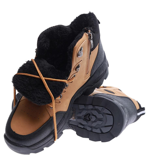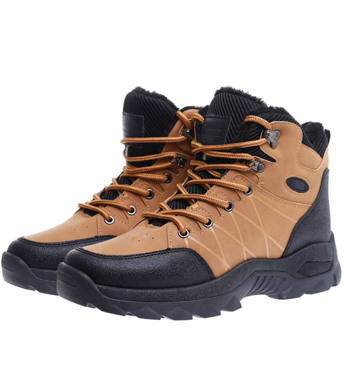Zimowe karmelowe meskie buty trekkingowe /D4-3 15302 T535/
