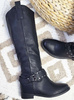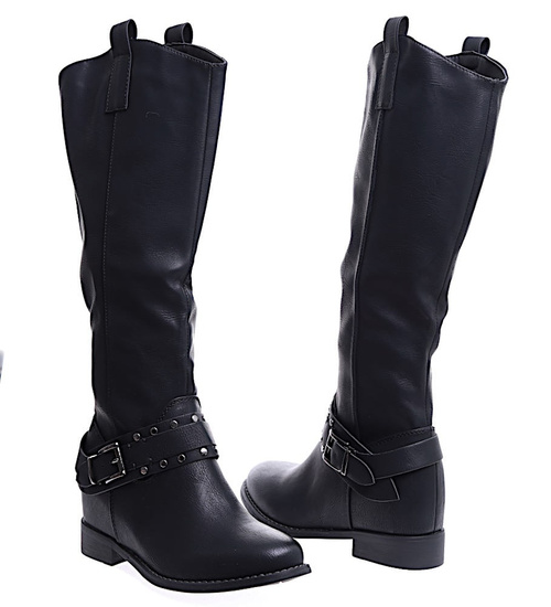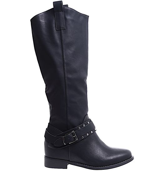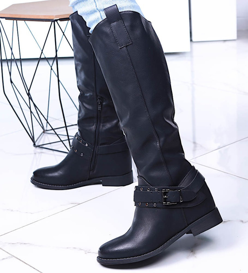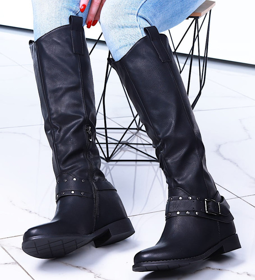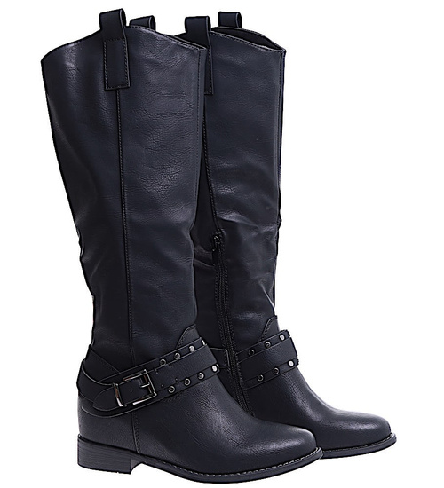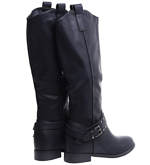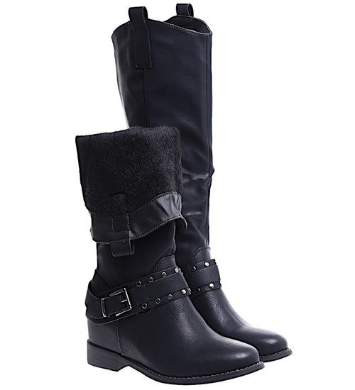 Ocieplane czarne kozaki damskie na niskim koturnie /J5-3 H2 15322 T386/
