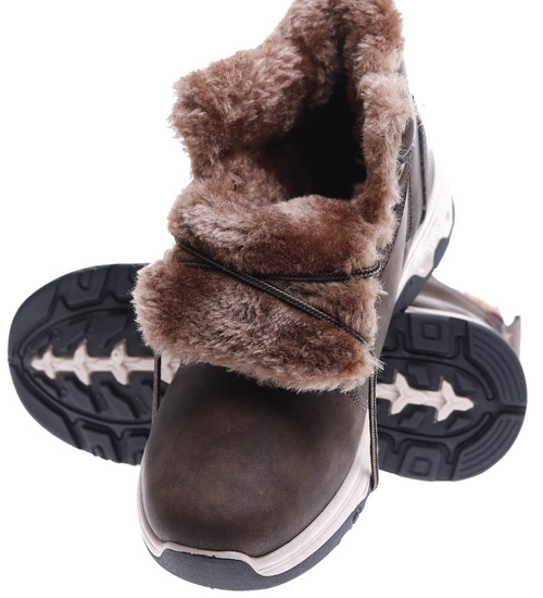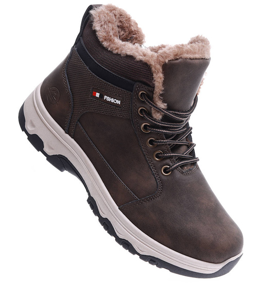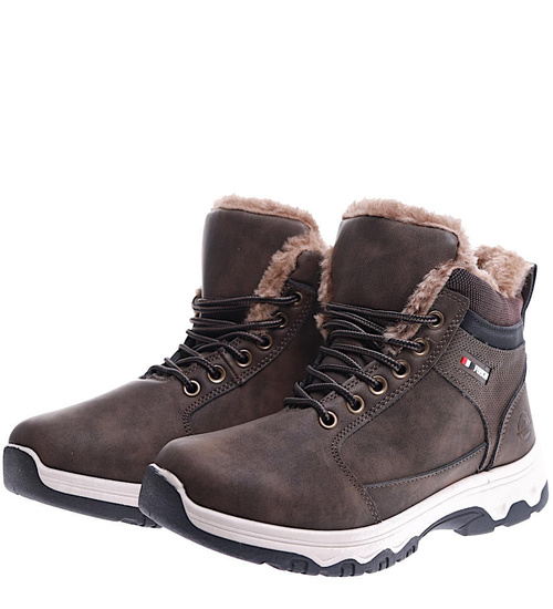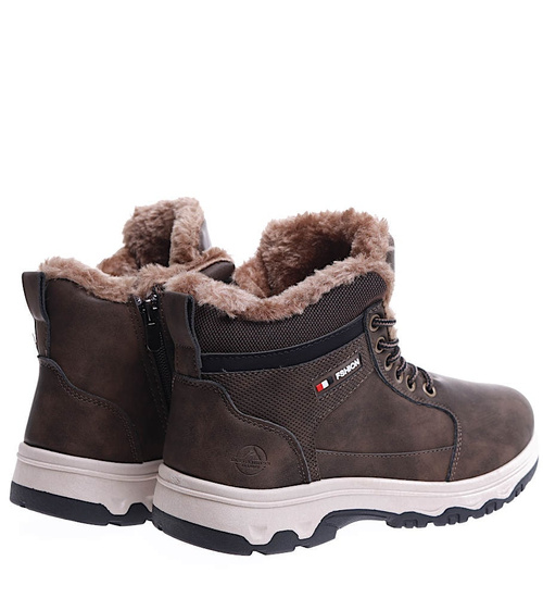 Zimowe bązowe chłopięce buty trekkingowe /E10-2 15340 T633/