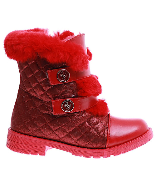 Czerwone dziewczęce pikowane botki ocieplane trapery /E10-2 15343 T346/