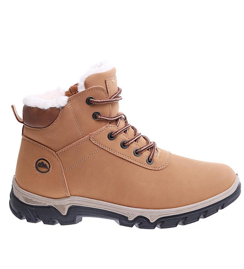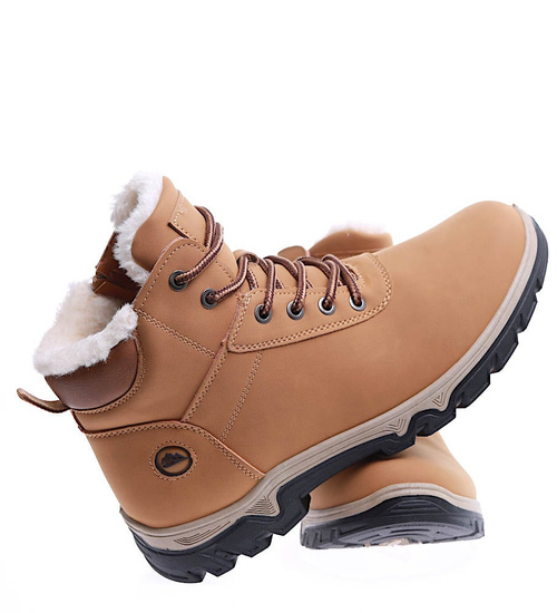 - Grubo ocieplone męskie buty trekkingowe w kolorze camel- wygodna propozycja na zimowe dni.