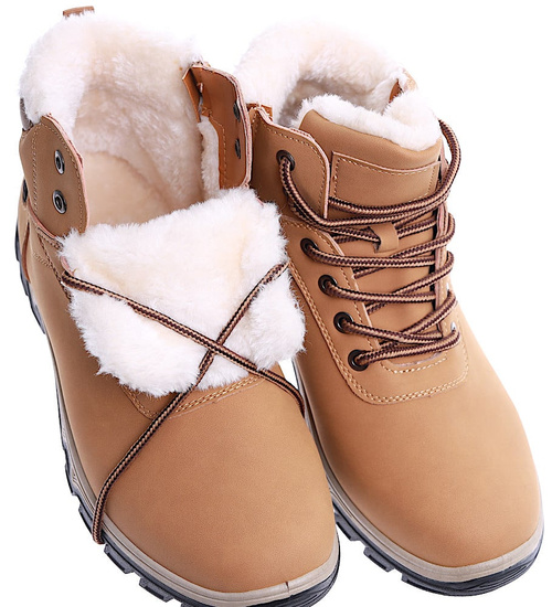 Zimowe camelowe męskie buty trekkingowe /E3-2 15347 T630/