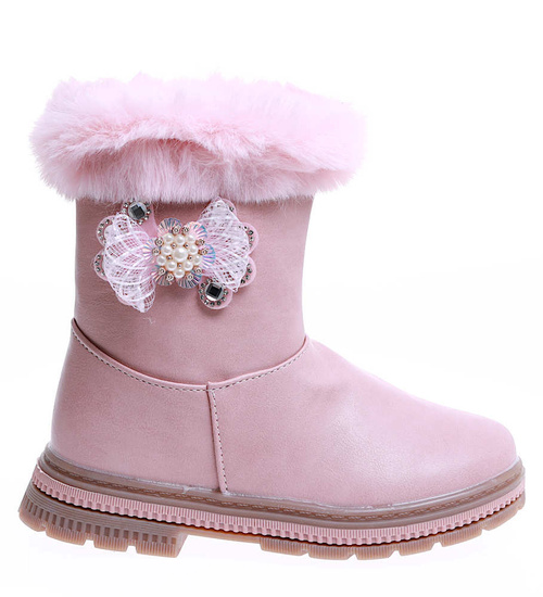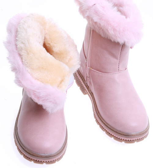 Grubo ocieplane różowe zimowe kozaki dla dziewczynki /C6-2 15350 T346/