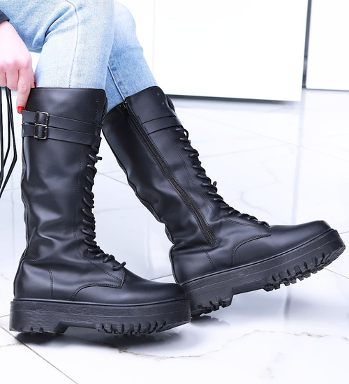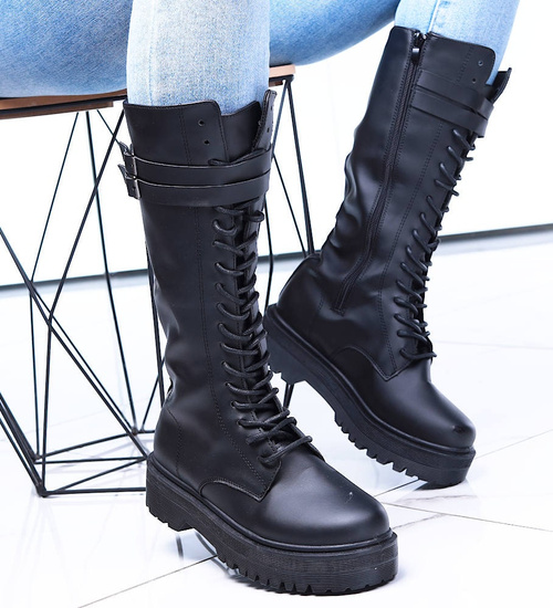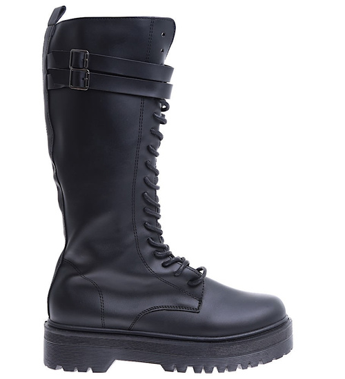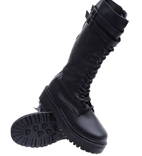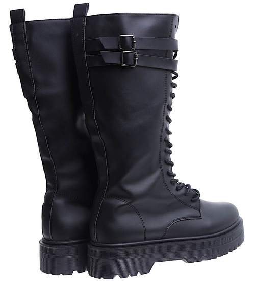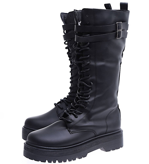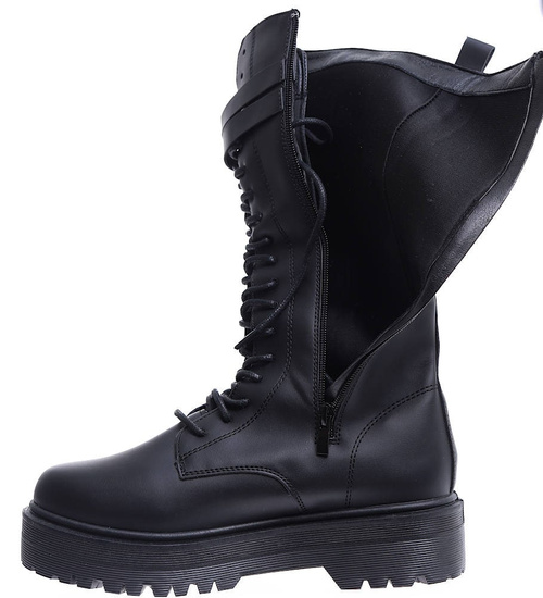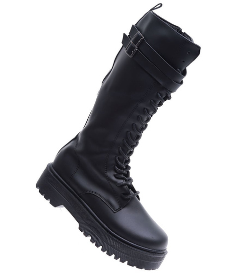 Czarne wysokie trapery glany na platformie /B1-2 15370 T485/