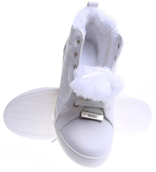 Zimowe białe trampki z futerkiem /G11-2 15384 T594/