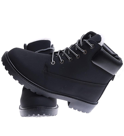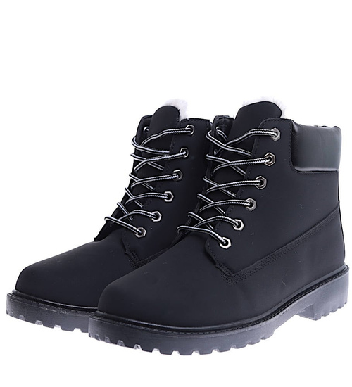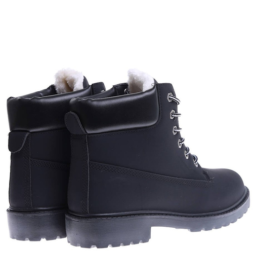 Zimowe trapery timberki męskie Czarne /E3-1 15387 T504/