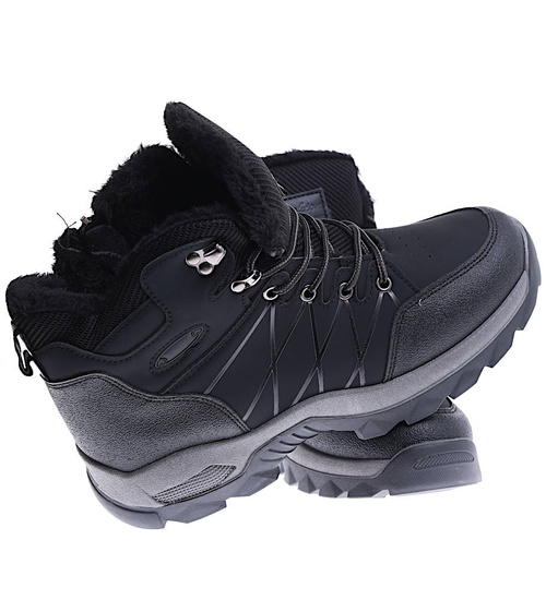 Zimowe czarne męskie buty trekkingowe /E6-3 15386 T535/