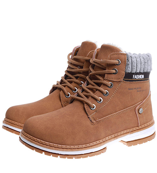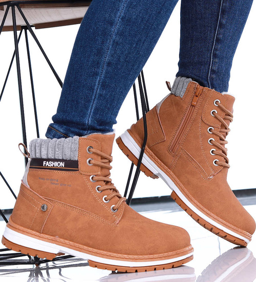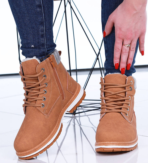Ocieplane karmelowe trapery damskie /G12-3 15393 S597/