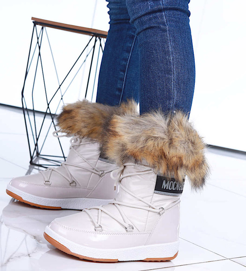 Grubo ocieplane beżowe śniegowce damskie na z futerkiem /E1-3 15399 T434/
