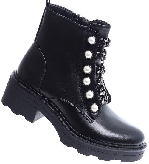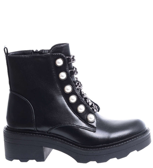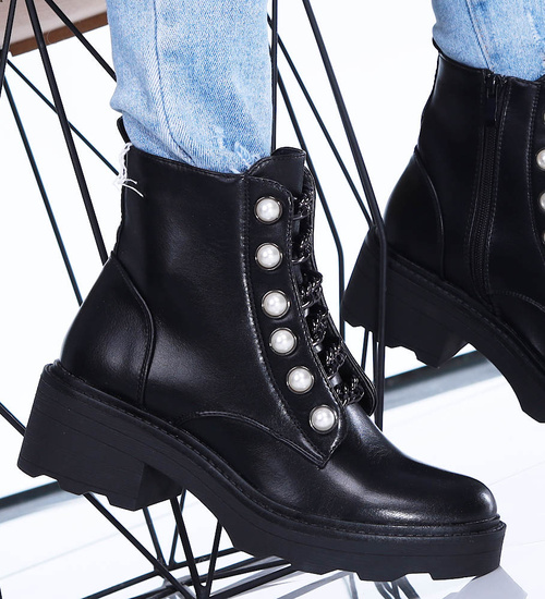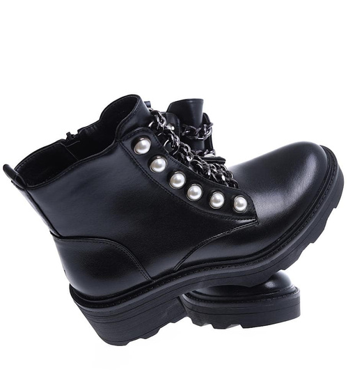 Ocieplane czarne trapery damskie z perełkami /C3-1 15444 T345/