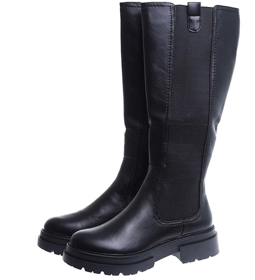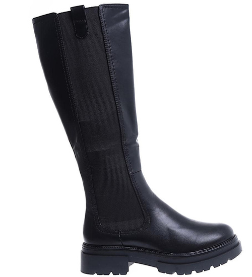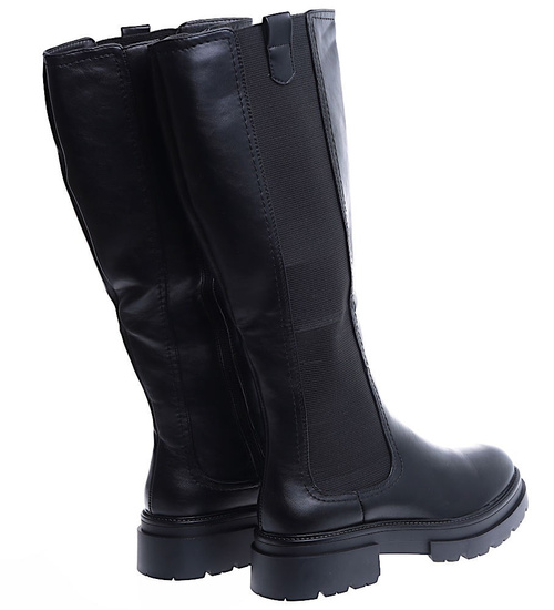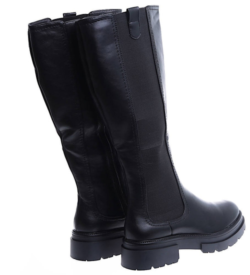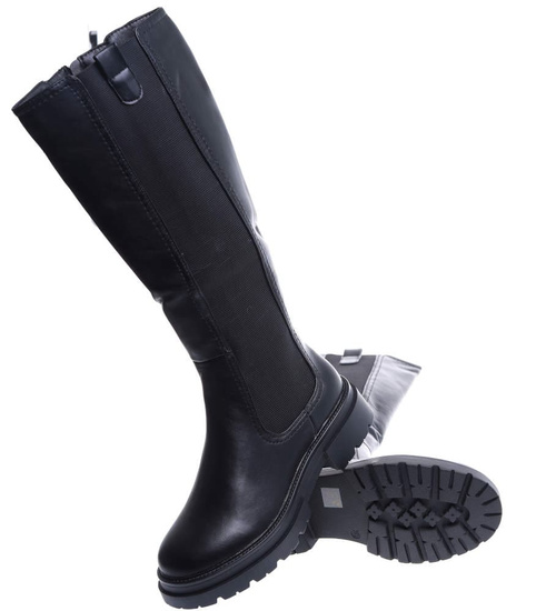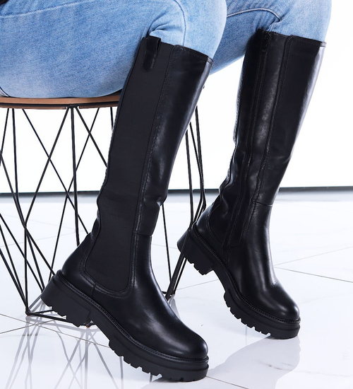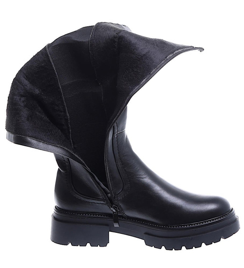 - Wnętrze czarnych kozaków zostało lekko ocieplone kocem obuwniczym.