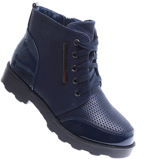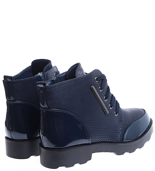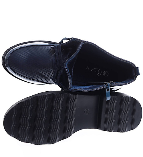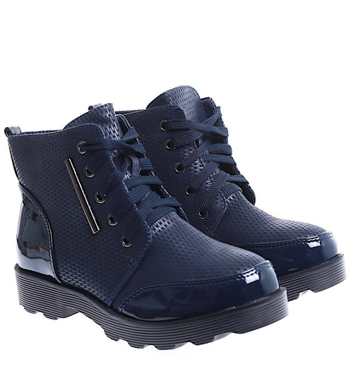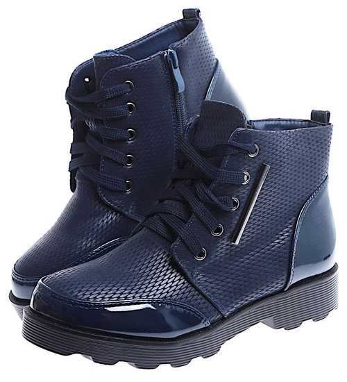 Sznurowane botki dziewczęce Granatowe /A1-3 15441 T147/