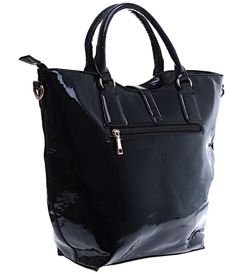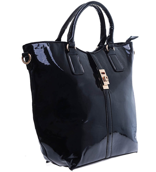 Czarna torebka damska to eleganckie połączenie stylu i funkcjonalności, stworzone z lakierowanej skóry ekologicznej.