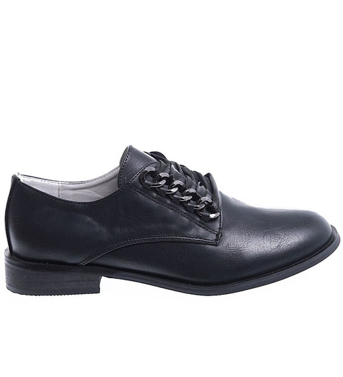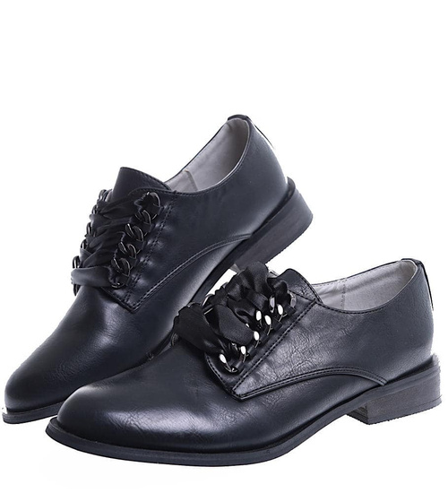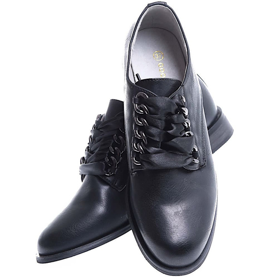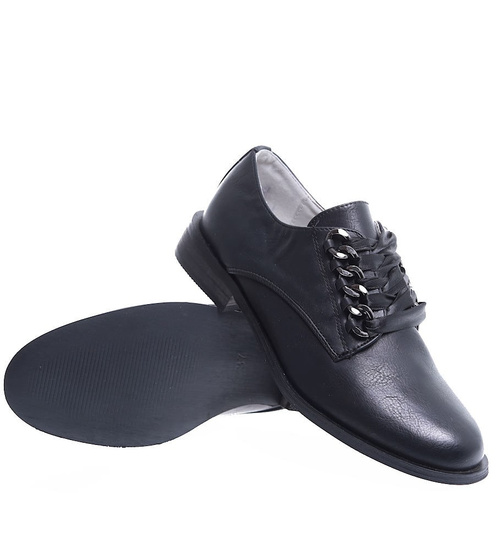 - Lekkie damskie półbuty wykonane z miękkiej skórki ekologicznej w kolorze czarnym.