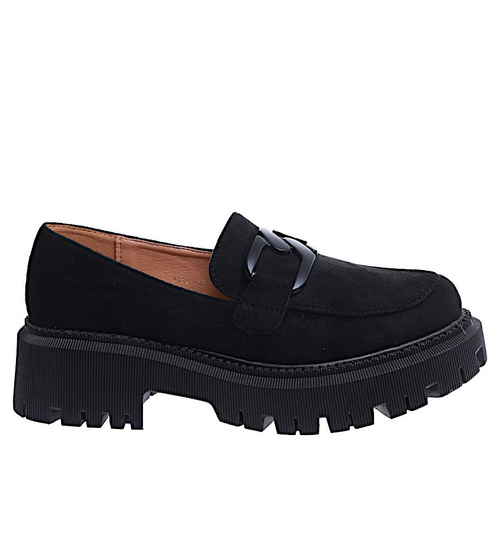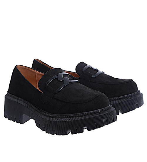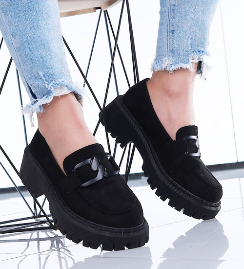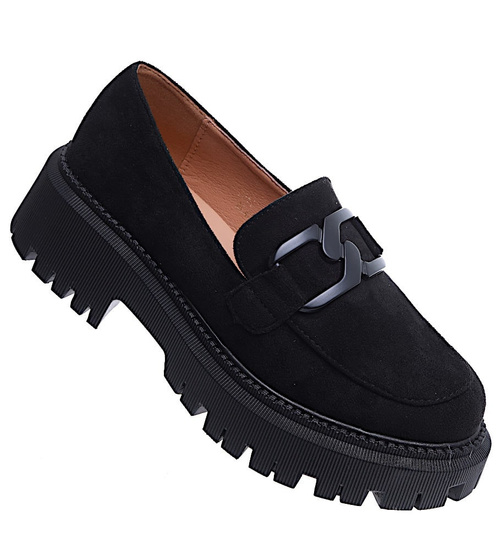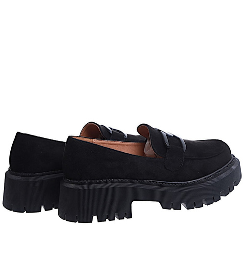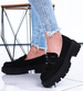Czarne zamszowe półbuty loafersy na platfomie /D6-1 15449 T438/