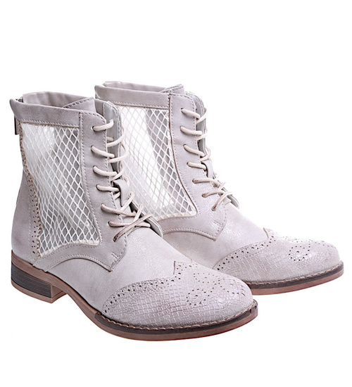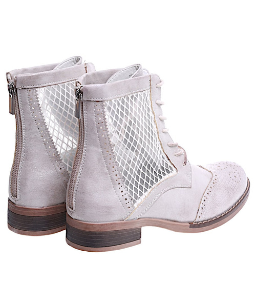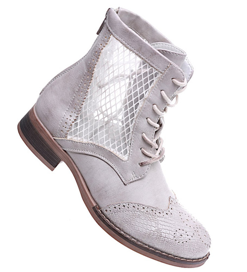 Wiosenne beżowe botki workery z ażurowymi wstawkami /B6-2 15457 S441/