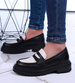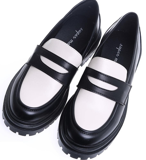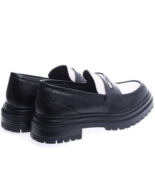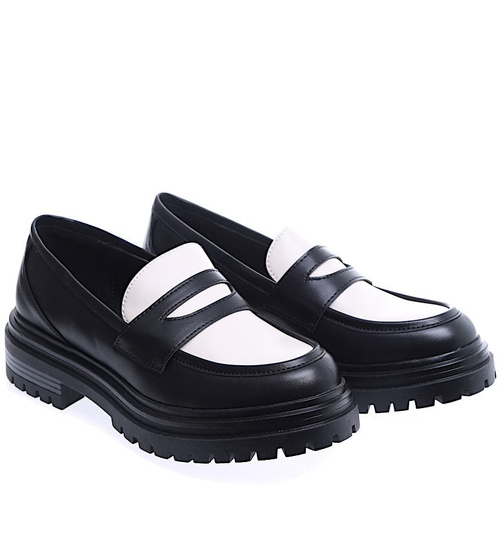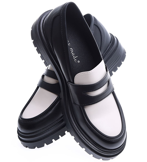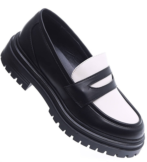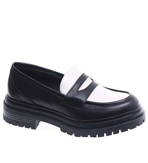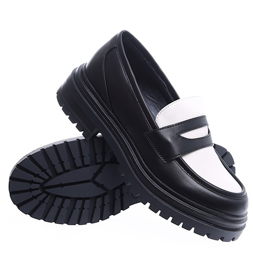 Czarno białe loafersy damskie półbuty na platformie /C5-3 15473 T238/