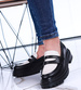 - Te buty posiadają płaski obcas oraz platformę, co nie tylko dodaje im wyjątkowego wyglądu, ale także zapewnia komfort noszenia.