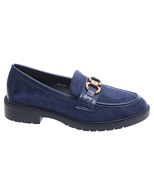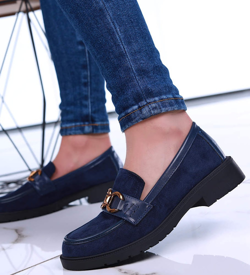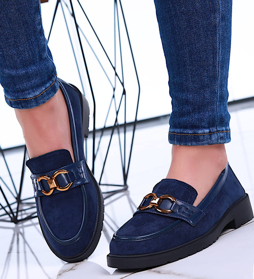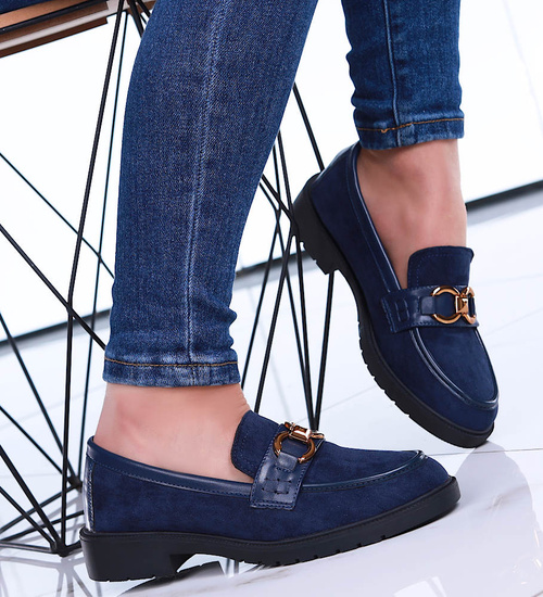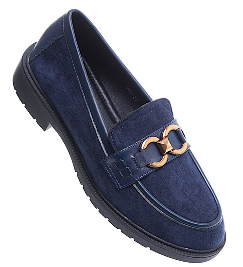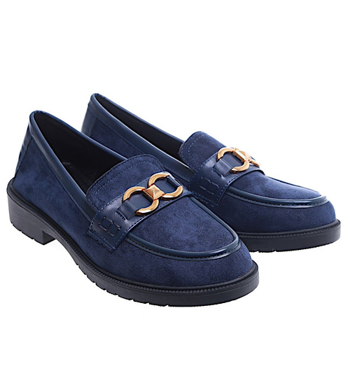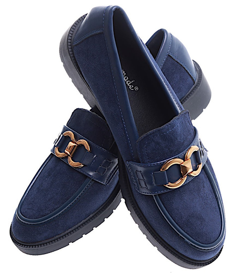 Wiosenne granatowe loafersy damskie /E7-2 15472 T324/