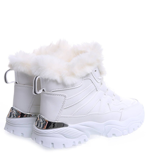 Zimowe ocieplane białe sneakersy dziewczęce /C6-2 15485 T481/