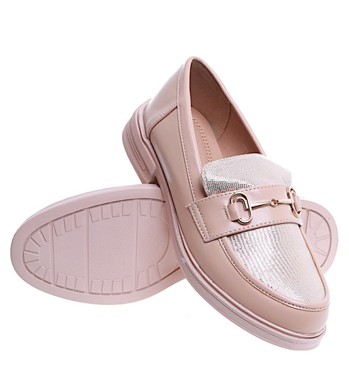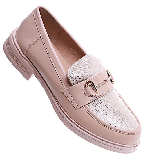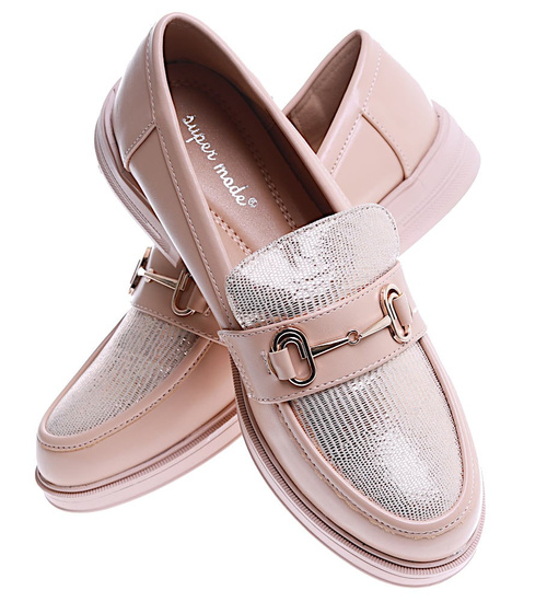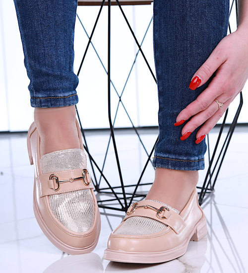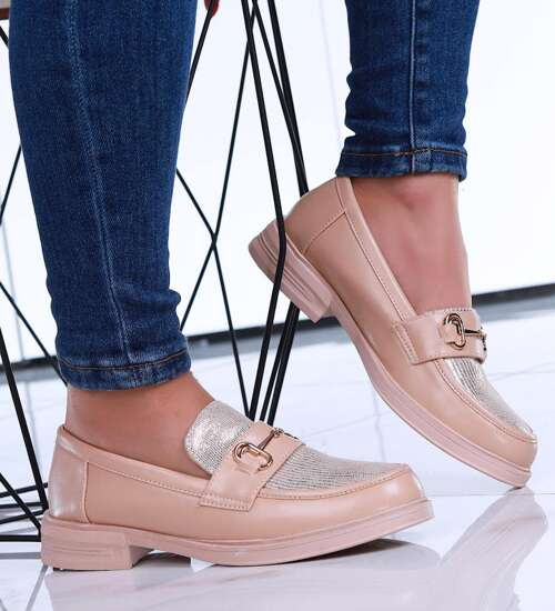 Wsuwane wiosenne beżowe loafersy damskie /A7-2 15481 T249