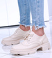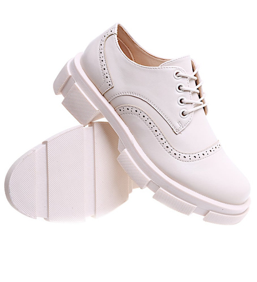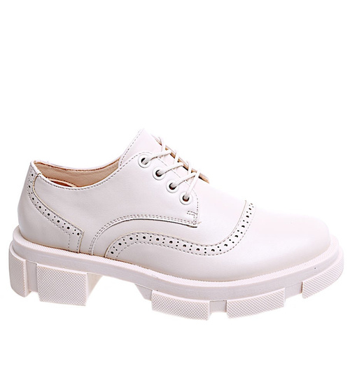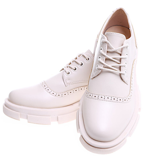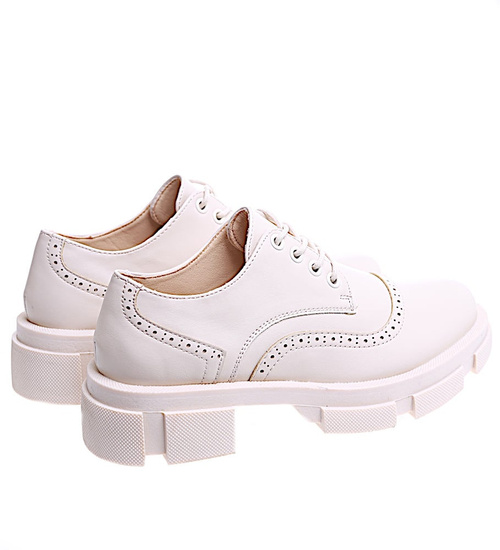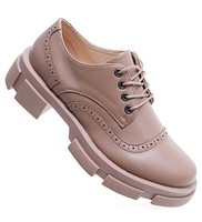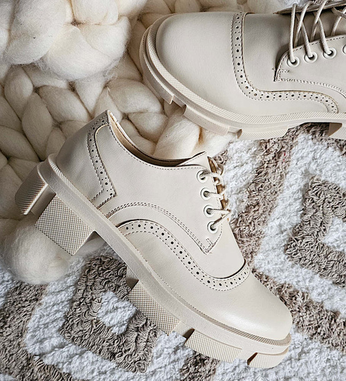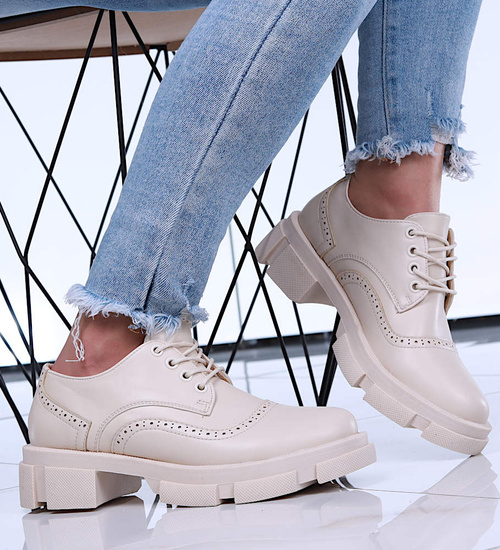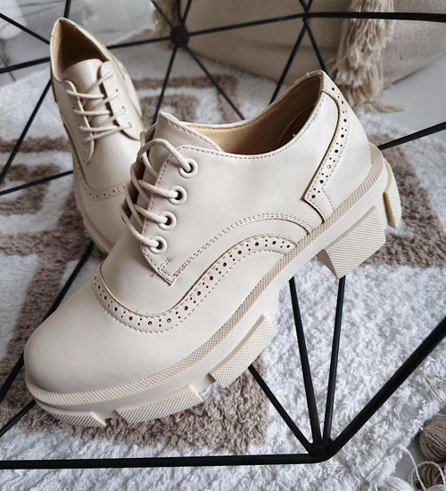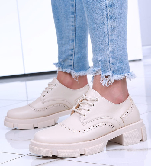 Beżowe sznurowane półbuty damskie na platformie /F9-2 15501 T248/