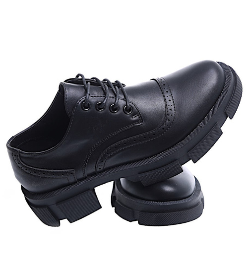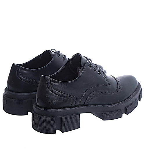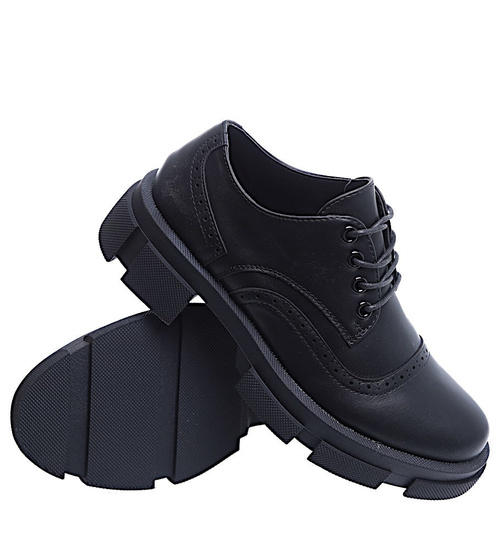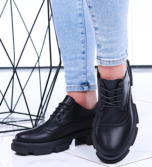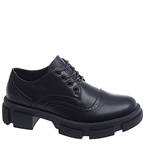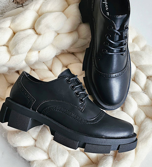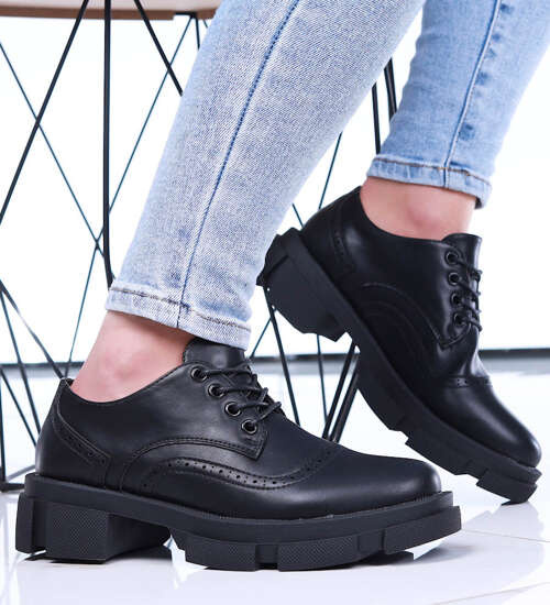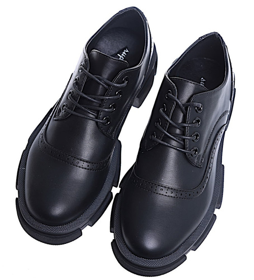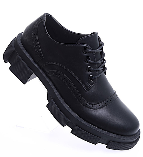 Czarne sznurowane półbuty damskie na platformie /E8-3 15500 T248/