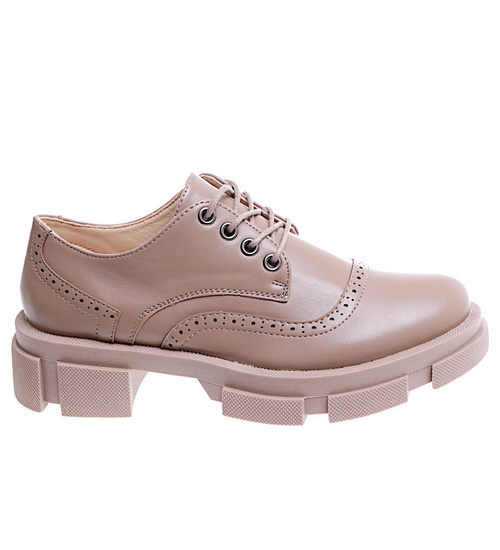 - Dodatkowo, półbuty posiadają platformę, co nie tylko dodaje im pewności kroku, ale także nadaje całości nowoczesnego charakteru.
