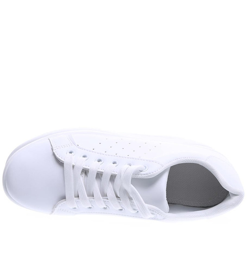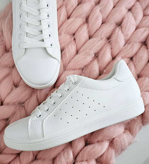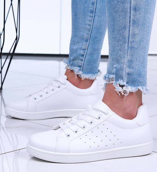- Funkcjonalne damskie trampki wykonane z wysokiej jakości eko skórki w eleganckim białym kolorze.
