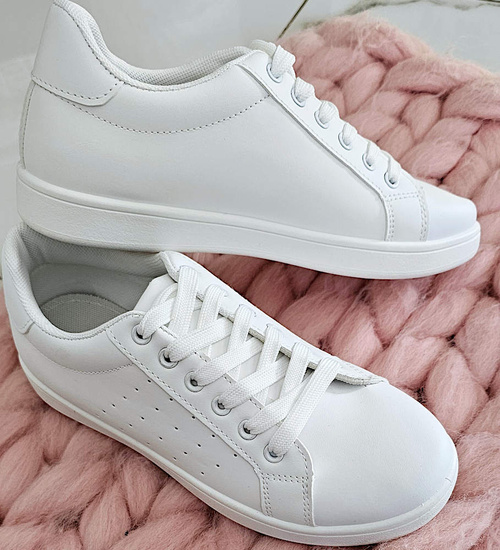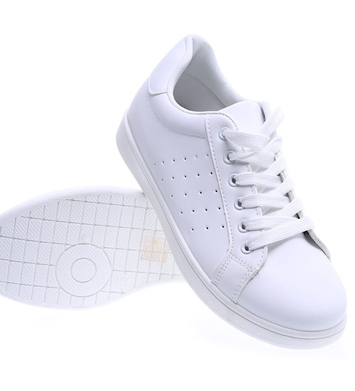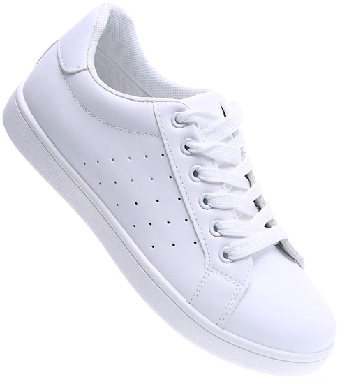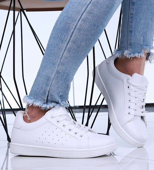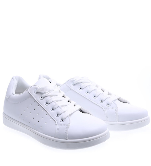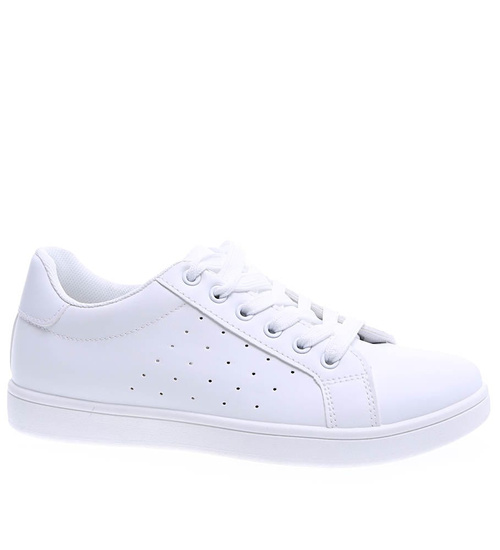 Białe niskie trampki damskie z wiązaniami /B1-2 15512 T300/